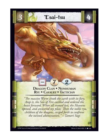 “The massive Wyrm shook the earth with its fury. Atop it, the Son of Fire cackled and ordered the beast forward. When all seemed lost, the Heavens opened, and answered my pleas. Then, the noble ryu, children of the dragons, surged forward to confront the twisted abomination.” –Tamori Sugi
