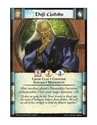 Crane Clan • Courtier •Samurai • Magistrate After another player’s Personality becomes dishonorable: Give your target Samurai +3F.