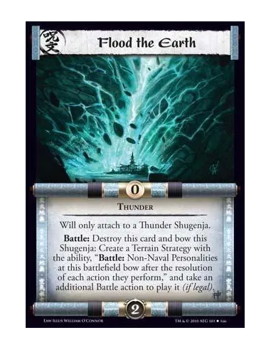 Thunder Will only attach to a Thunder Shugenja.Battle: Destroy this card and bow this Shugenja: Create a Terrain Strategy with the ability, “Battle: Non-Naval Personalities at this battlefield bow after the resolution of each action they perform,” and play the Terrain (if legal).