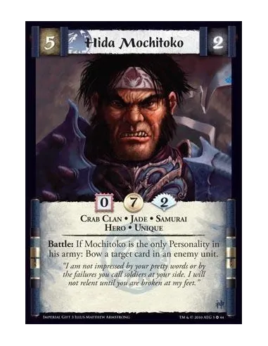 Crab Clan • Jade • Samurai • Hero • Unique Battle: If Mochitoko is the only Personality in his army: Bow a target card in an enemy unit.