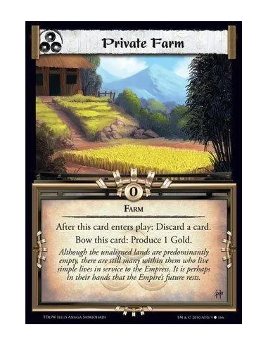 Farm After this card enters play: Discard a card. Bow this card: Produce 1 Gold.