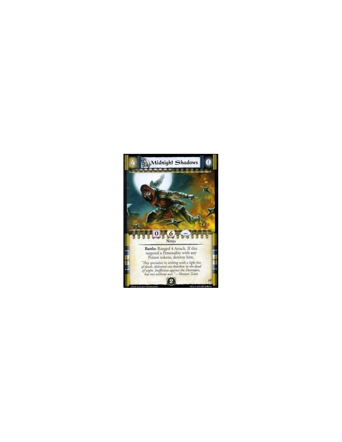 Ninja Battle: Ranged 4 Attack. If this targeted a Personality with any Poison tokens, destroy him.