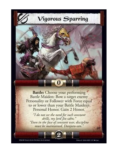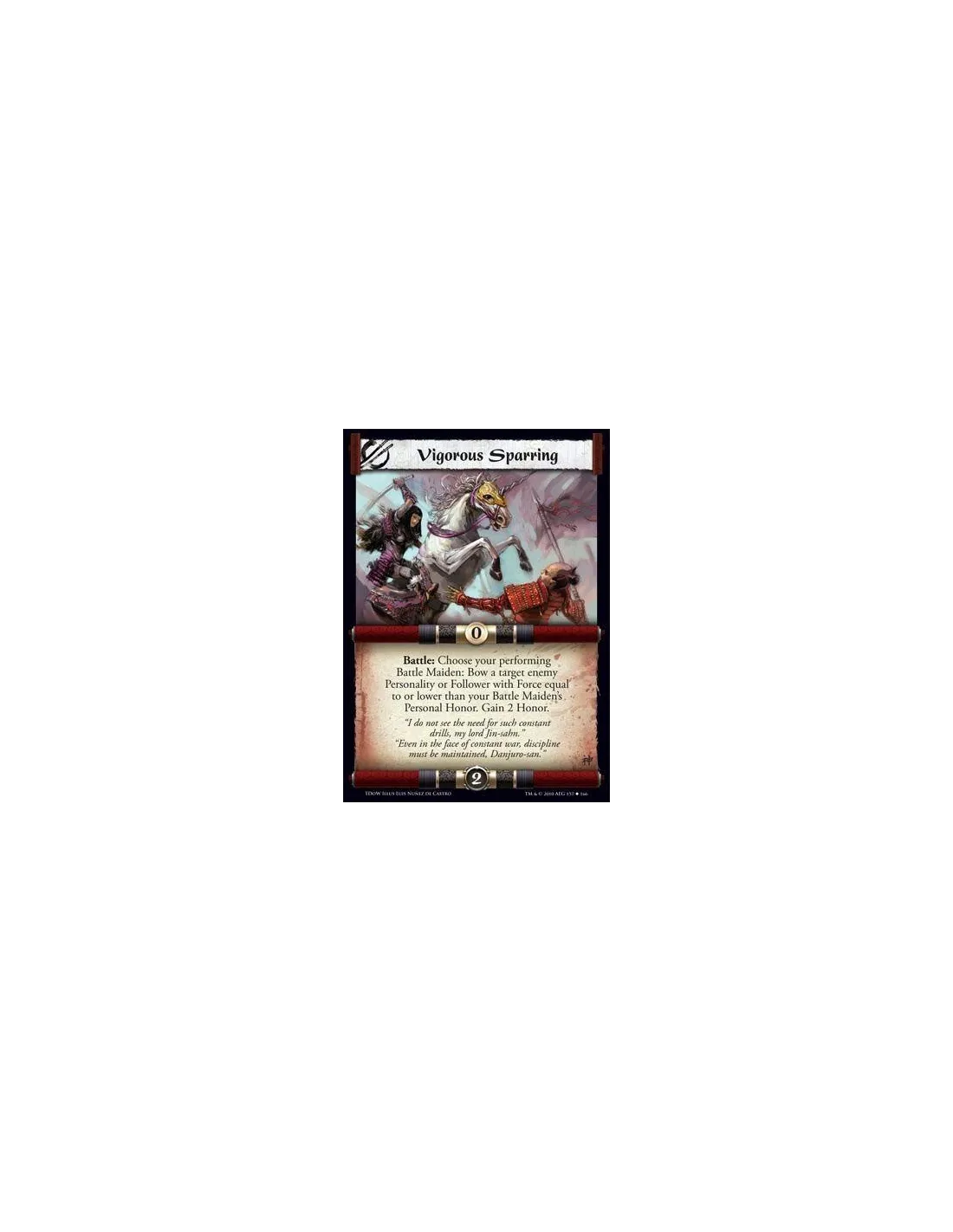 Battle: Choose your performing Battle Maiden: Bow a target enemy Personality or Follower with Force equal to or lower than your Battle Maiden’s Personal Honor. Gain 2 Honor.