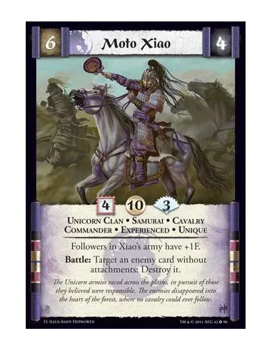 Followers in Xiao's army has +1F. Battle: Target an enemy card without attachments: Destroy it.