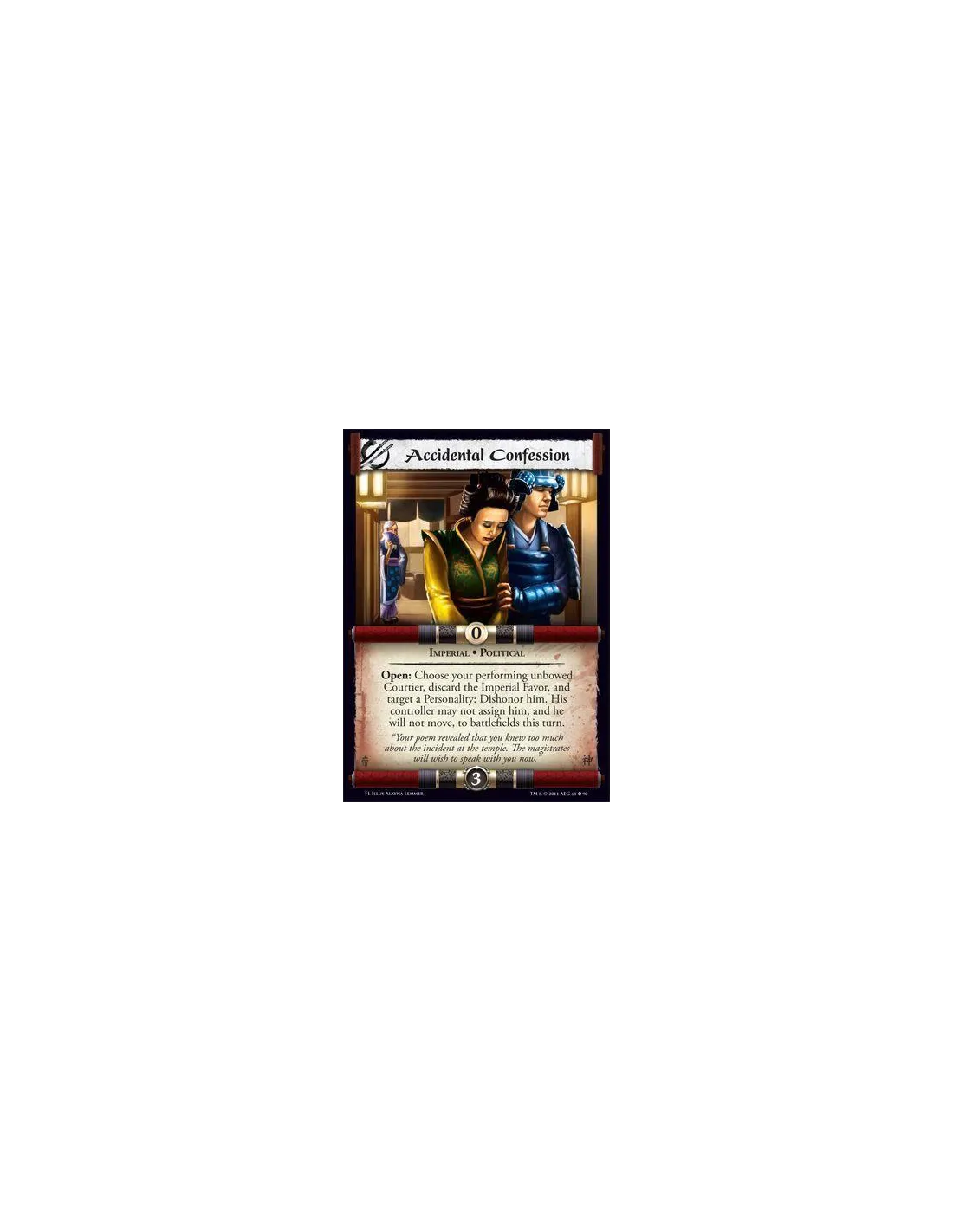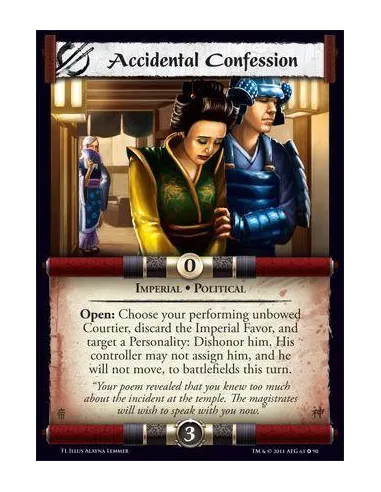 Open: Choose your performing unbowed Courtier, discard the Imperial Favor, and target a Personality: Dishonor him. His controller may not assign him, and he will not move, to battlefields this turn.