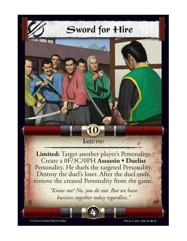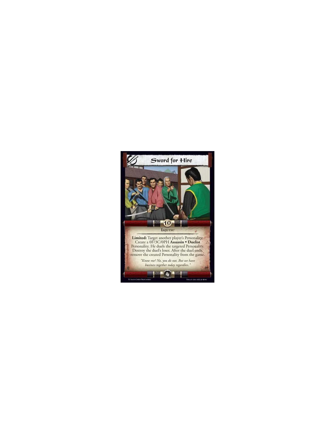 Limited: Target another player's Personality: Create a 0F/3C/0PH Assasin • Duelist Personlaty. He dueles the targeted Personality. Destroy the duel's loser. After the duel ends, remove the created Personality from the game.