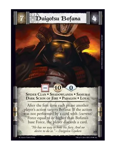 After the first time each phase another player’s action targets Bofana: If the action was not performed by a card with (current) Force equal to or higher than Bofana’s base Force, the player discards a card.