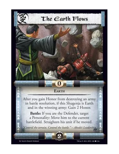 After you gain Honor from destroying an army in battle resolution, if this Shugenja is Earth and in the winning army: Gain 2 Honor. Battle: If you are the Defender, target a Personality: Move him to the current battlefield. Straighten his unit if he moved.
