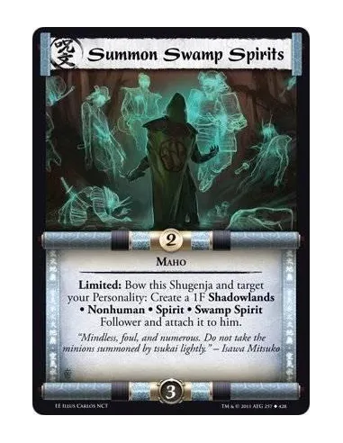 Limited: Bow this Shugenja and target your Personality: Create a 1F Shadowlands • Nonhuman • Spirit • Swamp Spirit Follower and attach it to him.