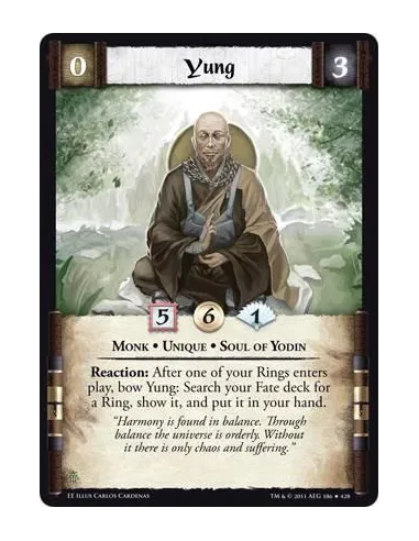 Reaction: After one of your Rings enters play, bow Yung: Search your Fate deck for a Ring, show it, and put it in your hand.