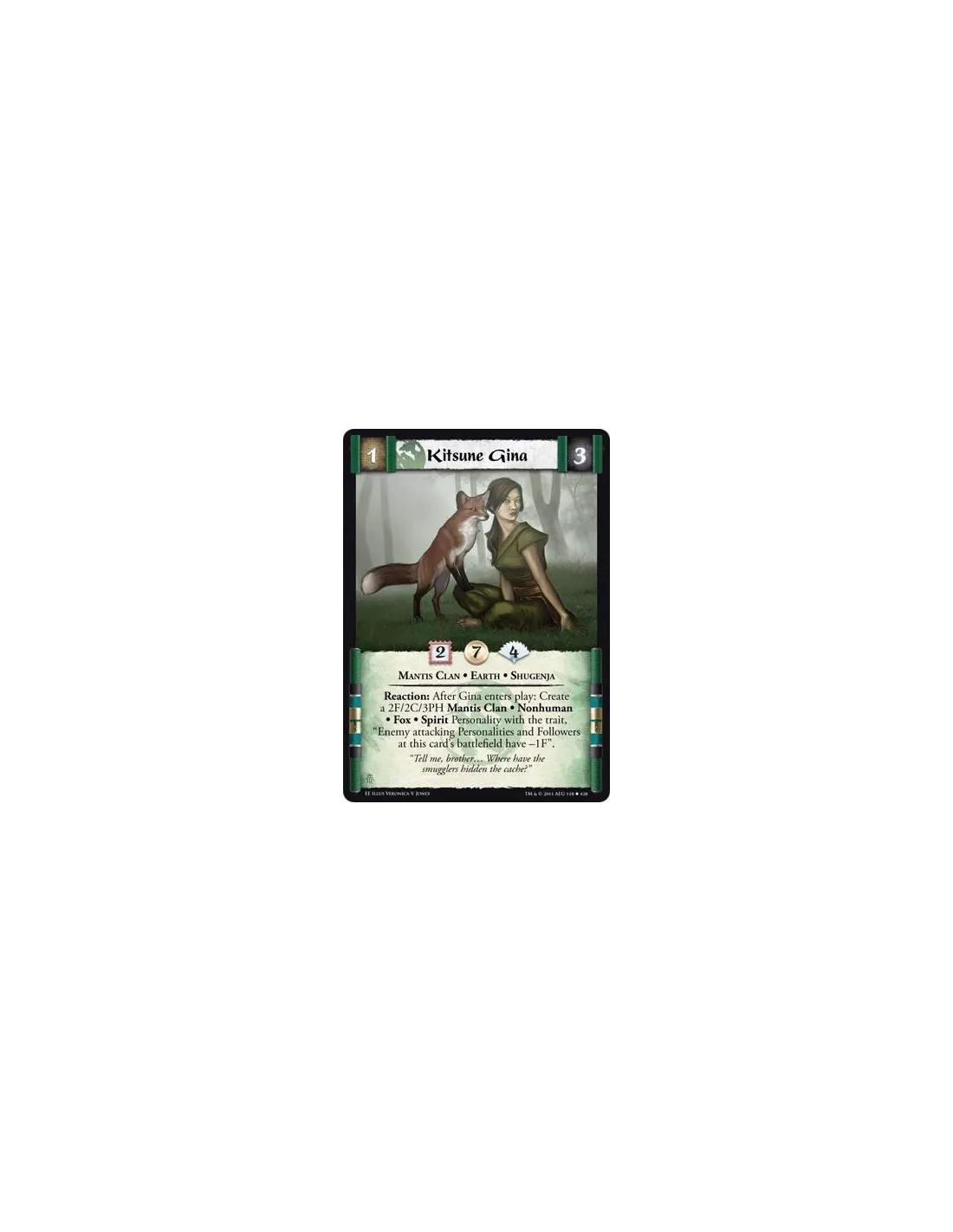 Reaction: After Gina enters play: Create a 2F/2C/3PH Mantis Clan • Nonhuman • Fox • Spirit Personality with the trait, “Enemy attacking Personalities and Followers at this card’s battlefield have –1F”.