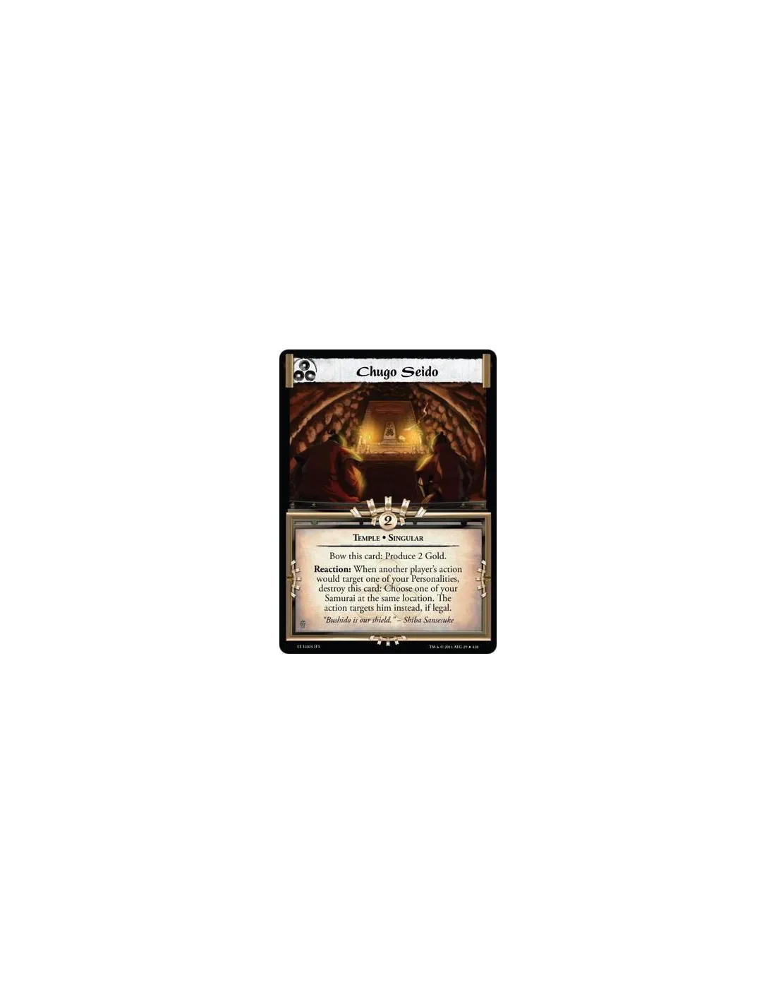 Bow this card: Produce 2 Gold. Reaction: When another player’s actionwould target one of your Personalities, destroy this card: Choose one of your Samurai at the same location. The action targets him instead, if legal.