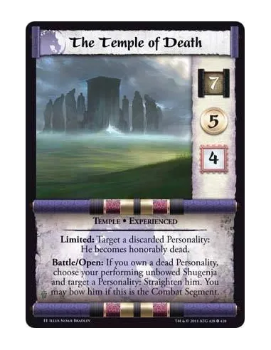 Limited: Target a discarded Personality: He becomes honorably dead. Battle/Open: If you own a dead Personality, choose your performing unbowed Shugenja and target a Personality: Straighten him. You may bow him if this is the Combat Segment.