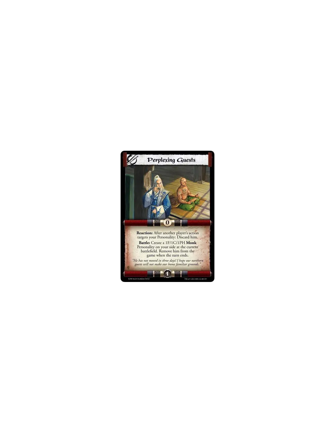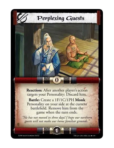 Reaction: After another player’s action targets your Personality: Discard him. Battle: Create a 1F/1C/1PH Monk Personality on your side at the current battlefield. Remove him from the game when the turn ends