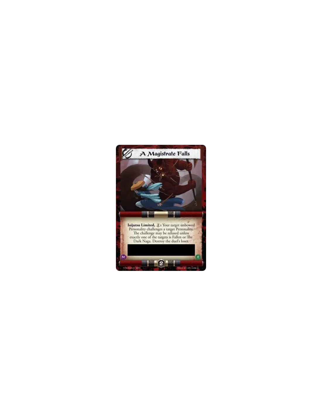 : Your target unbowed Personality challenges a target Personality. The challenge may be refused unless exactly one of the targets is Fallen or The Dark Naga. Destroy the duel's loser.