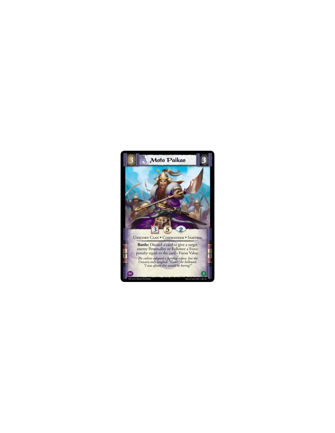 Battle: Discard a card to give a target enemy Personality or Follower a Force penalty equal to the card's Focus Value.