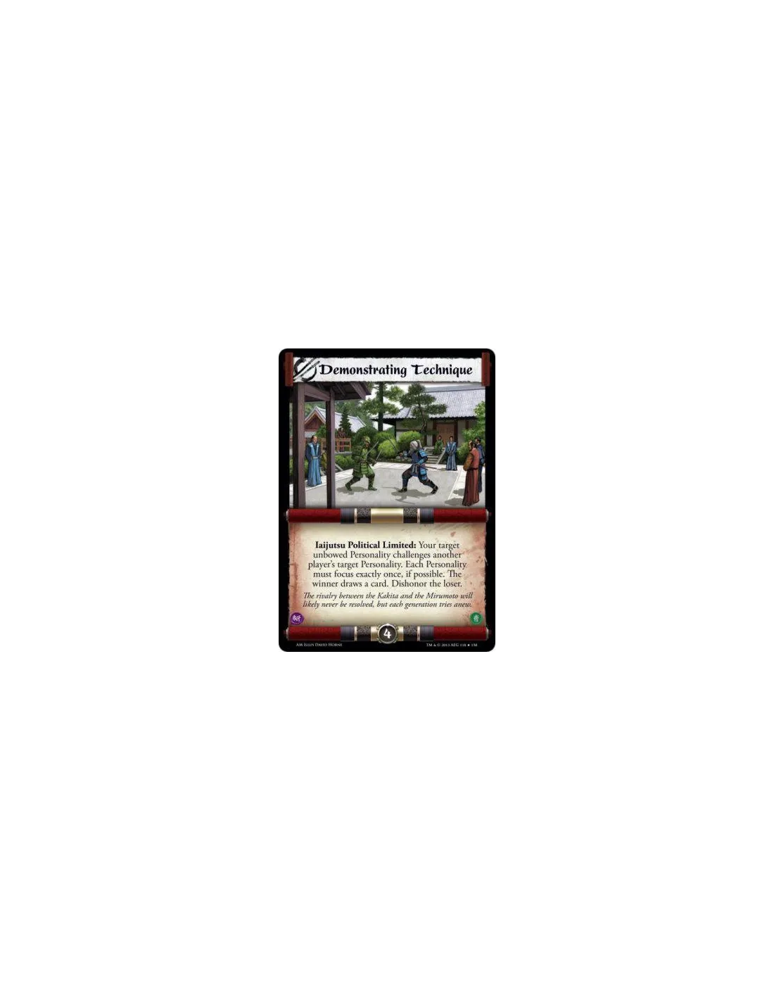 Iaijutsu Political Limited: Your target unbowed Personality challenges another player's target Personality. Each Personality must focus exactly once, if possible. The winner draws a card. Dishonor the loser.