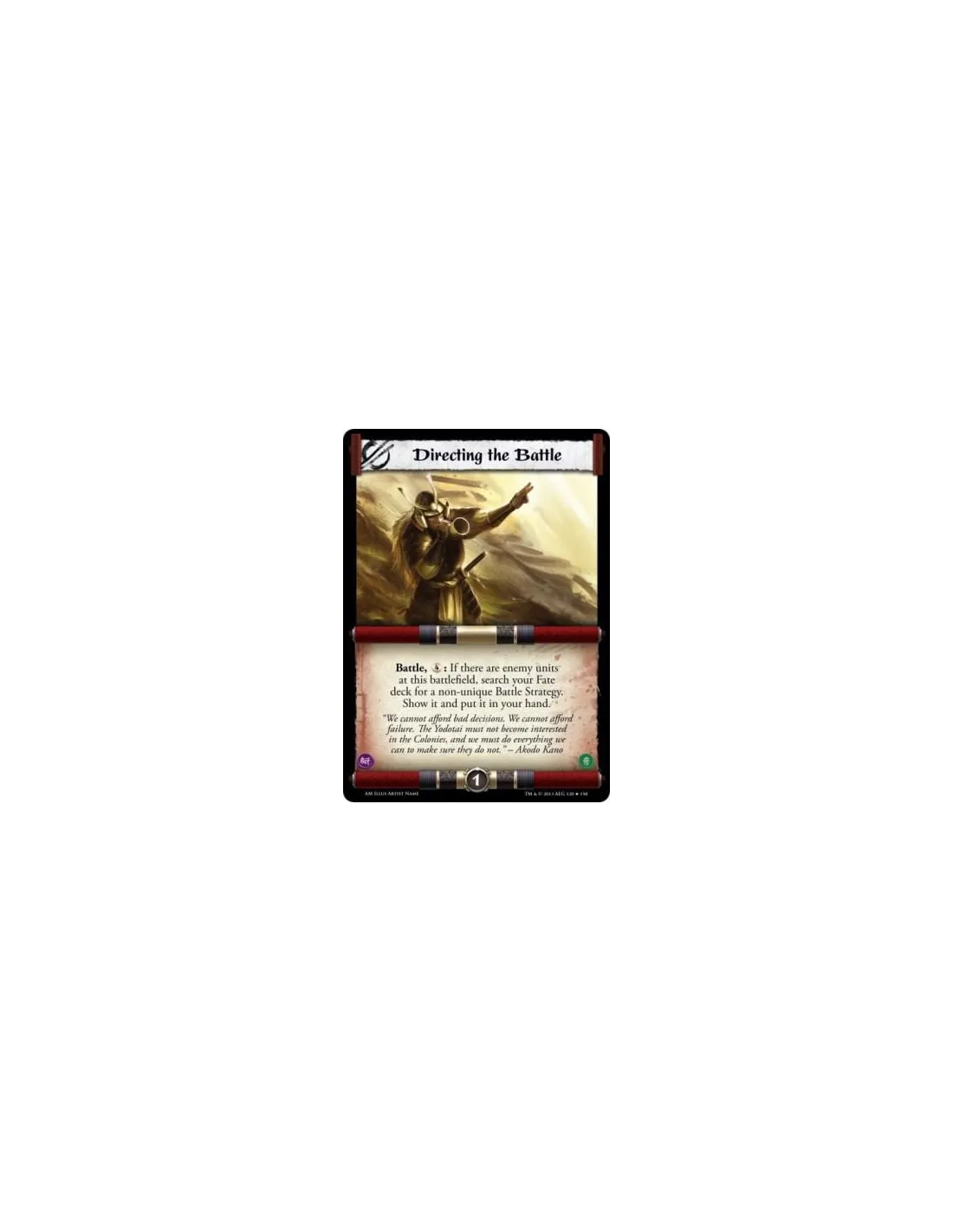 : If there are enemy units at this battlefield, search your Fate deck for a non-unique Battle Strategy. Show it and put it in your hand.