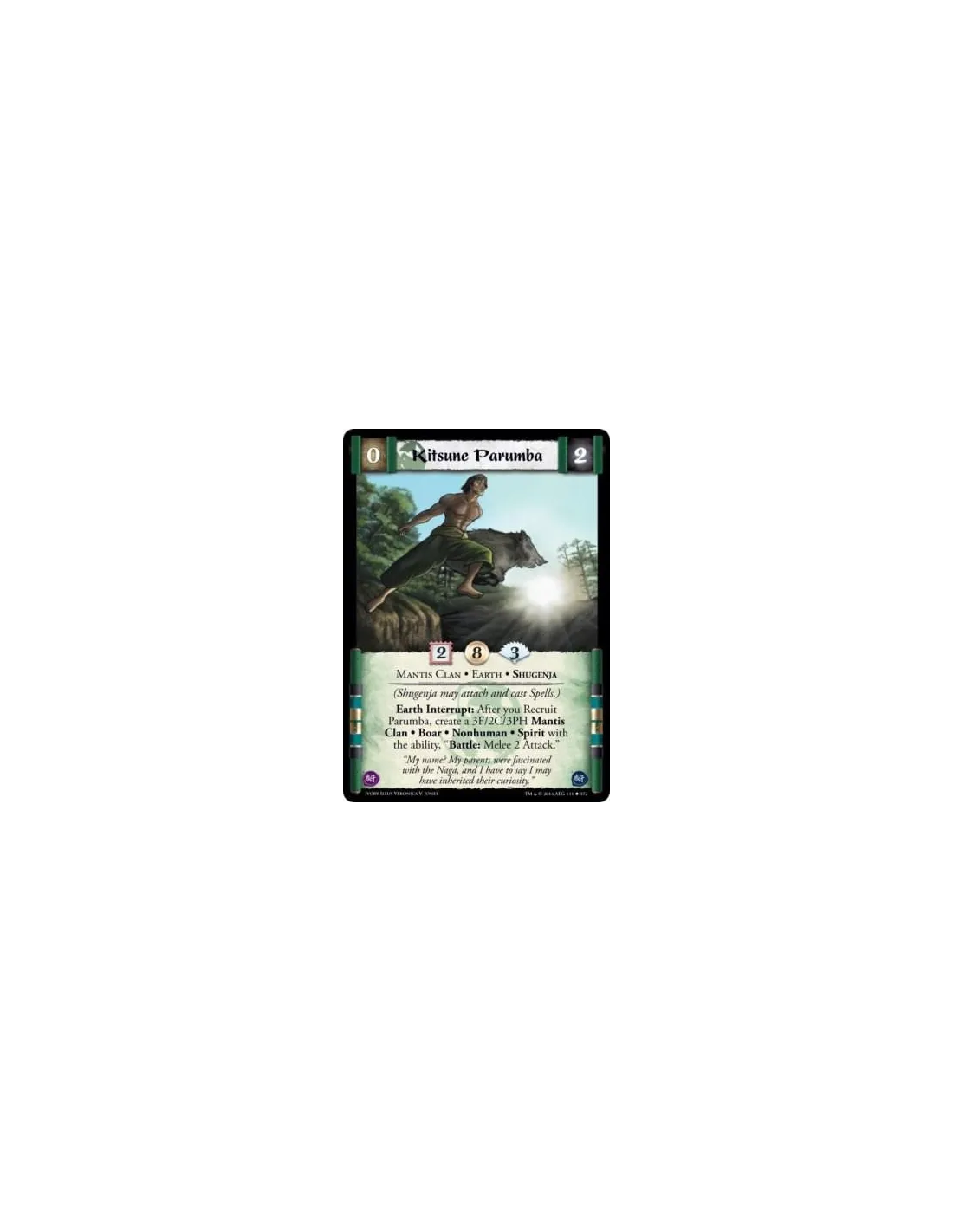 Earth Interrupt: After you Recruit Parumba, create a 3F/2C/3PH Mantis Clan • Boar • Nonhuman • Spirit with the ability, "Battle: Melee 2 Attack."