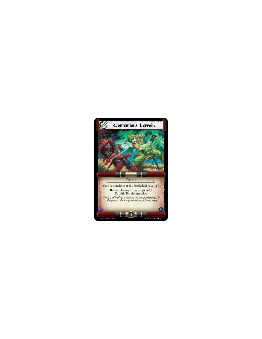 Battle: Destroy a Terrain (if able). Put this Terrain into play.
