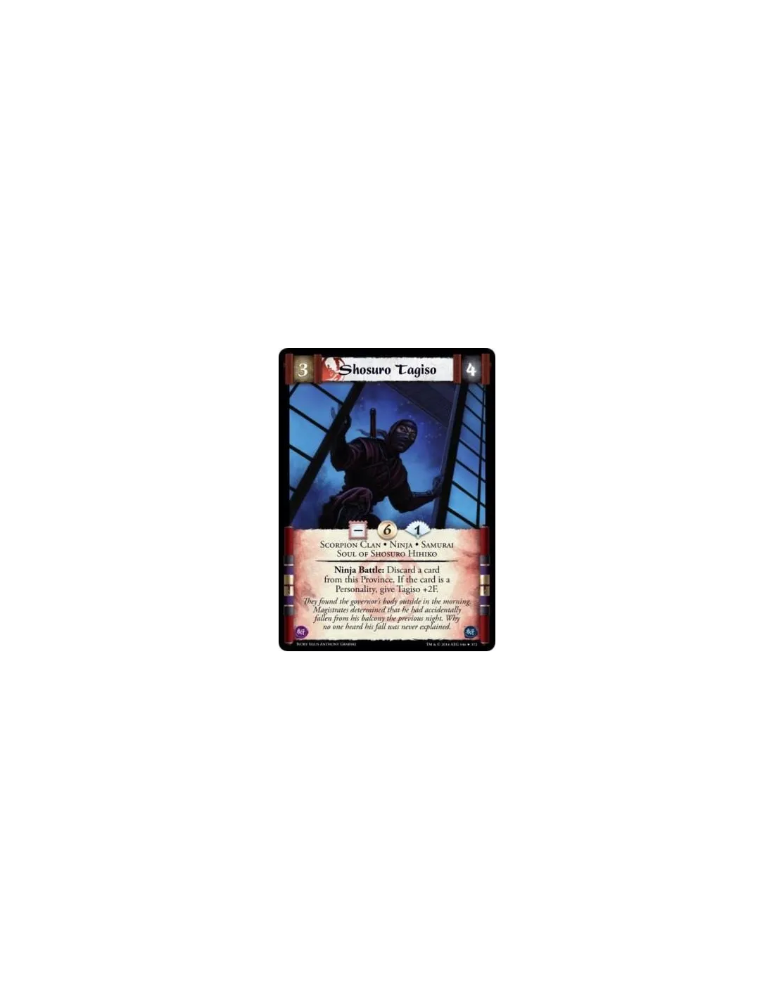 Ninja Battle: Discard a card from this Province. If the card is a Personality, give Tagiso +2F.