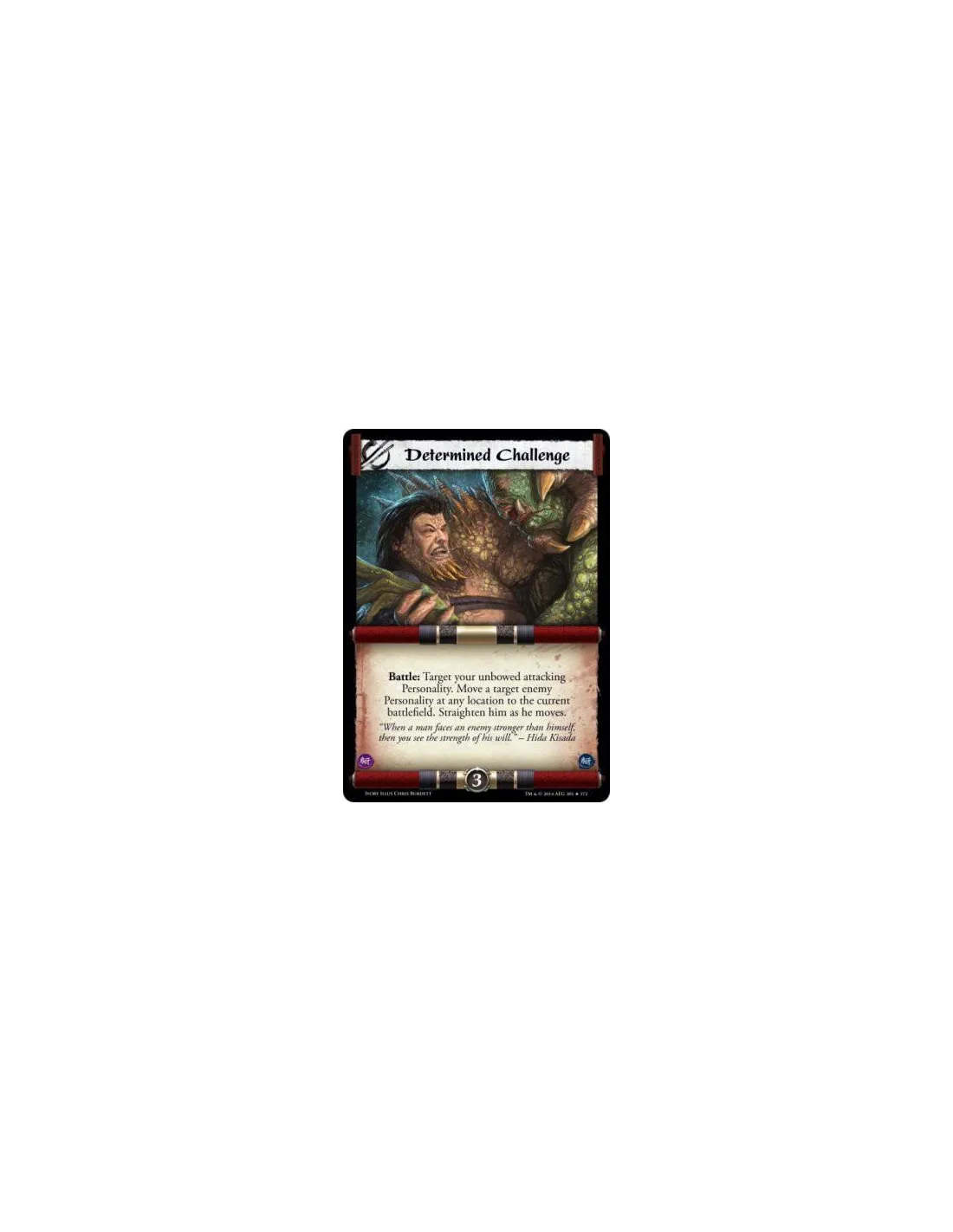Battle: Target your unbowed attacking Personality. Move a target enemy Personality at any location to the current battlefield. Straighten him as he moves.