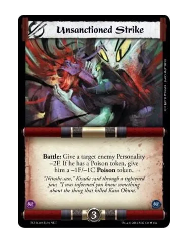 Battle: Give a target enemy Personality -2F. If he has a Poison token, give him a -1F/-1C Poison token.