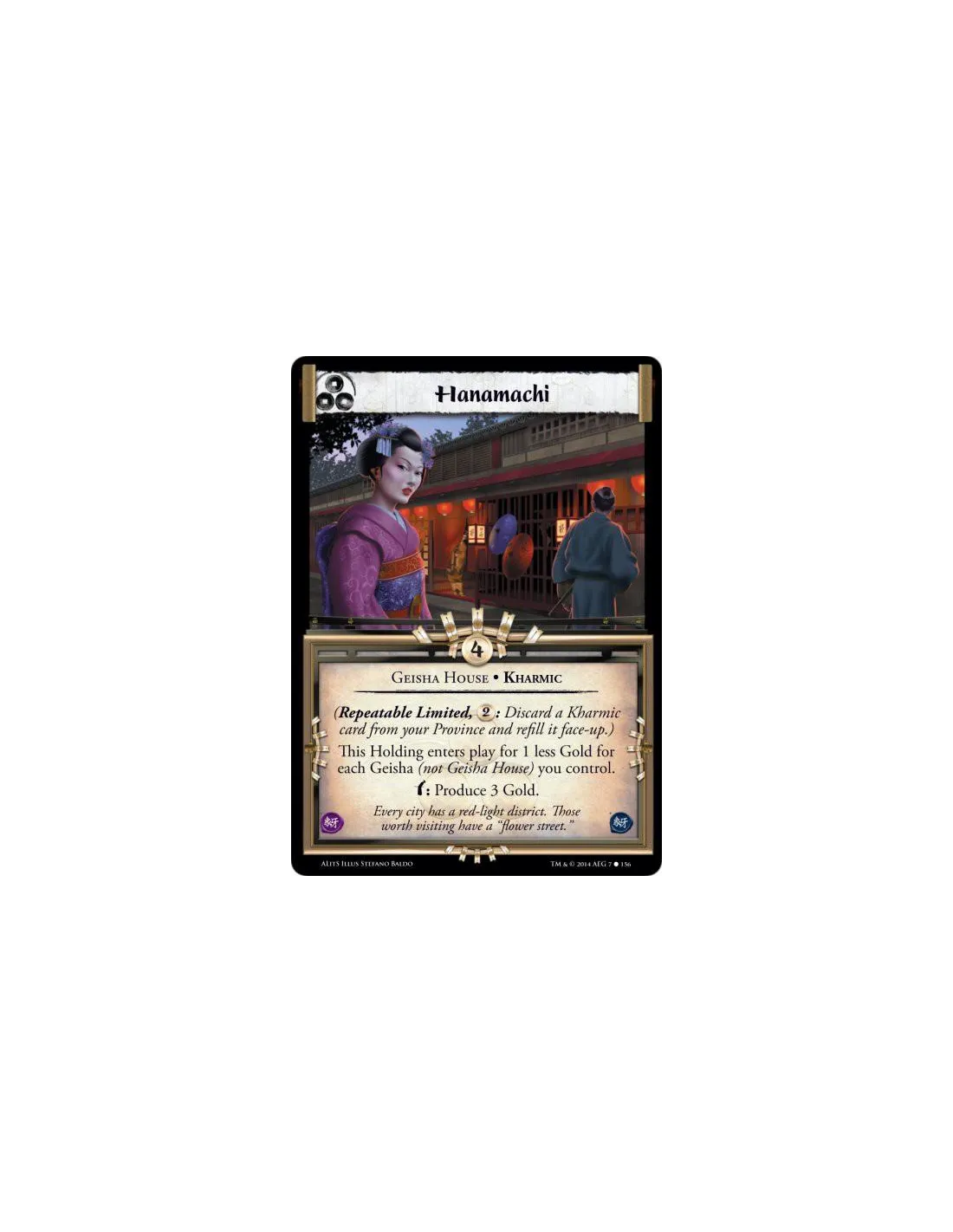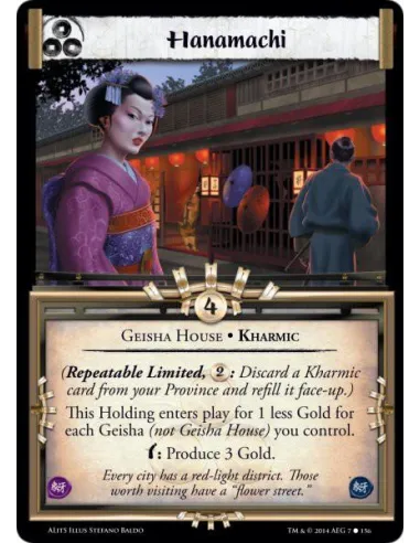 This Holding enters play for 1 less Gold for each Geisha (not Geisha House) you control.