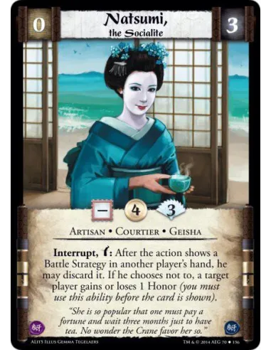 Interrupt, w: After the action shows a Battle Strategy in another player's hand, he may discard it. If he chooses not to, a target player gains or loses 1 Honor (you must use this ability before the card is shown).