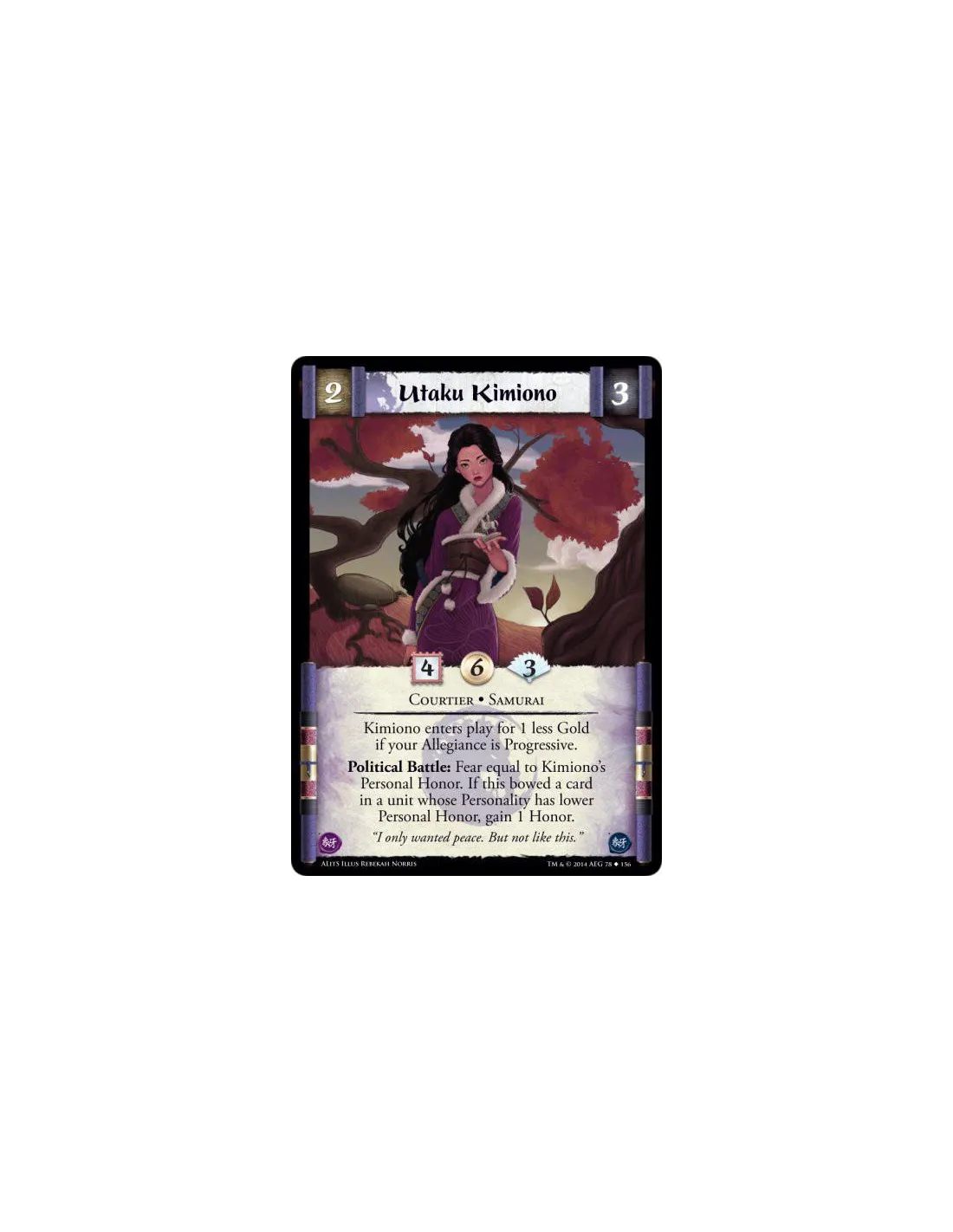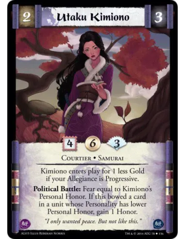 Political Battle: Fear equal to Kimiono's Personal Honor. If this bowed a card in a unit whose Personality has lower Personal Honor, gain 1 Honor.