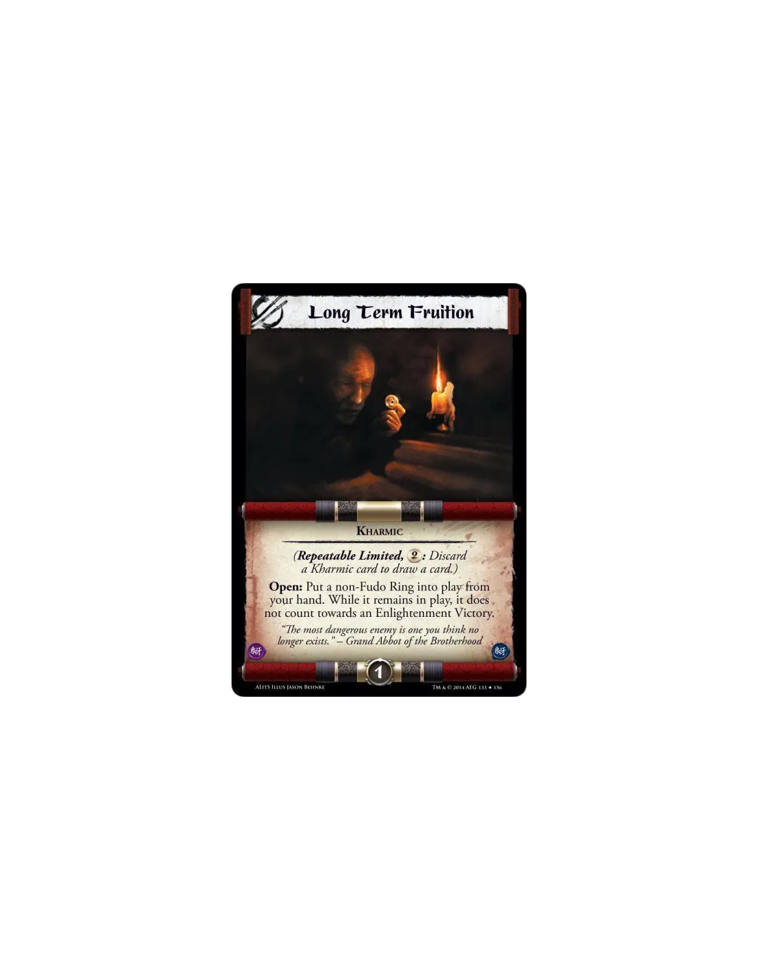 Open: Put a non-Fudo Ring into play from your hand. While it remains in play, it does not count towards an Enlightenment Victory.