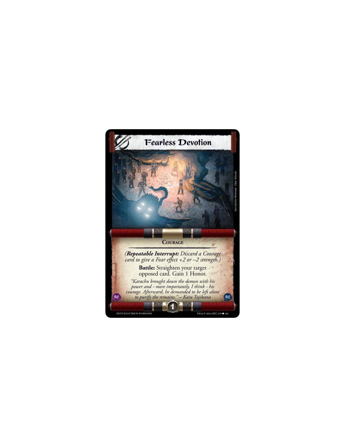 Fearless Devotion  - Courage(Repeatable Interrupt: Discard a Courage card to give a Fear effect +2 or -2 strength.)Battle: Strai