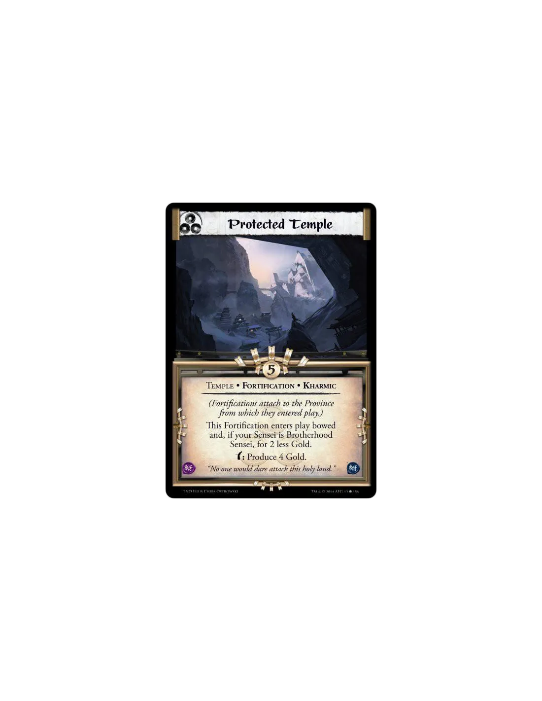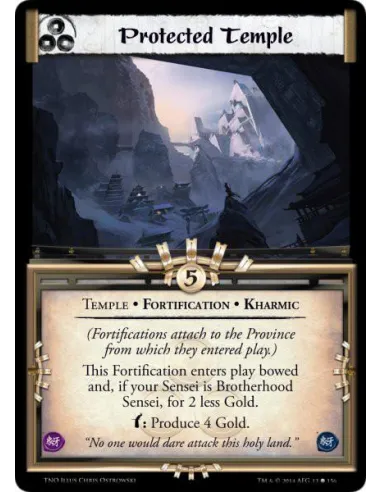 This Fortification enters play bowed and, if your Sensei is Brotherhood Sensei, for 2 less Gold.