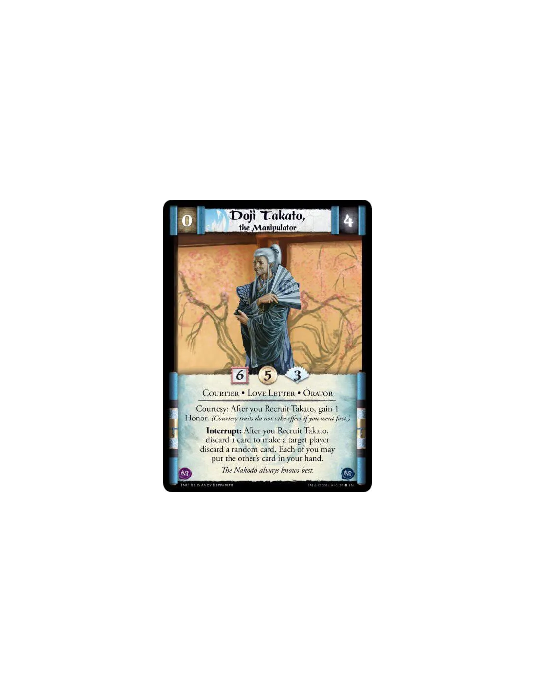 Courtesy: After you Recruit Takato, gain 1 Honor. (Courtesy traits do not take effect if you went first.)