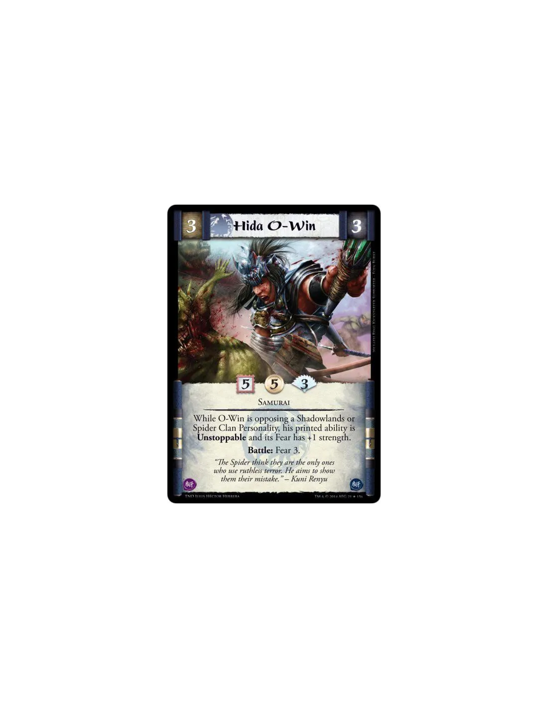 While O-Win is opposing a Shadowlands or Spider Clan Personality, his printed ability is Unstoppable and its Fear has +1 strength.