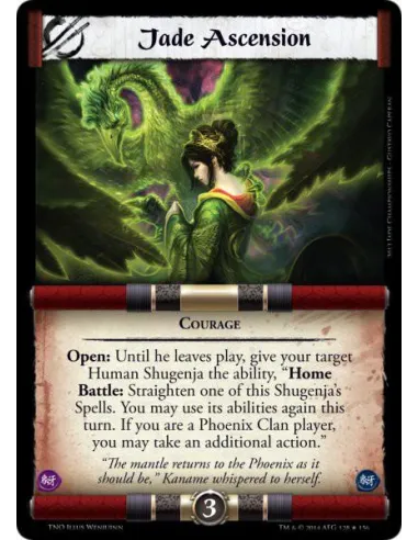 Open: Until he leaves play, give your target Human Shugenja the ability, "Home Battle: Straighten one of this Shugenja's Spells. You may use its abilities again this turn. If you are a Phoenix Clan player, you may take an additional action."