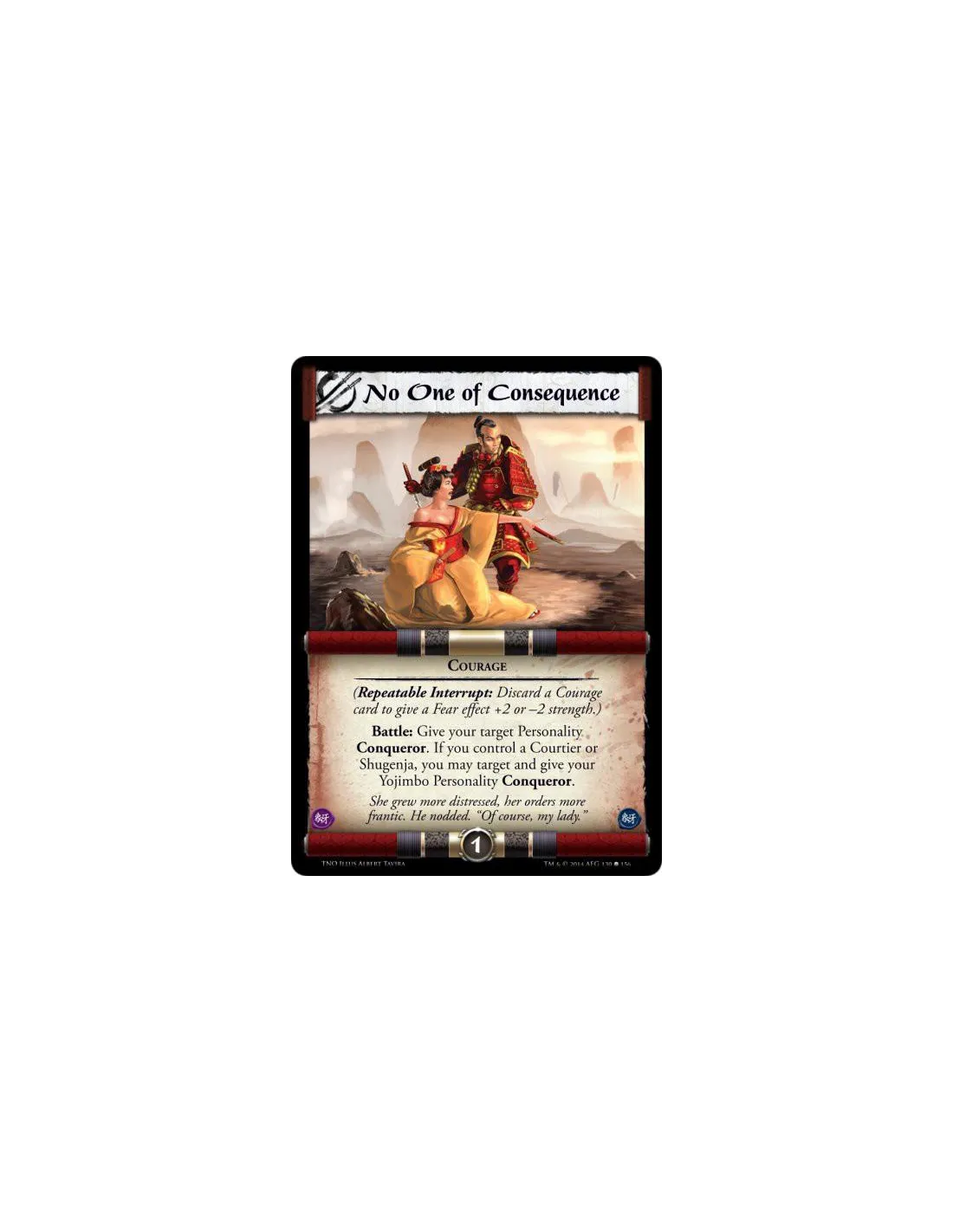 Battle: Give your target Personality Conqueror. If you control a Courtier or Shugenja, you may target and give your Yojimbo Personality Conqueror.