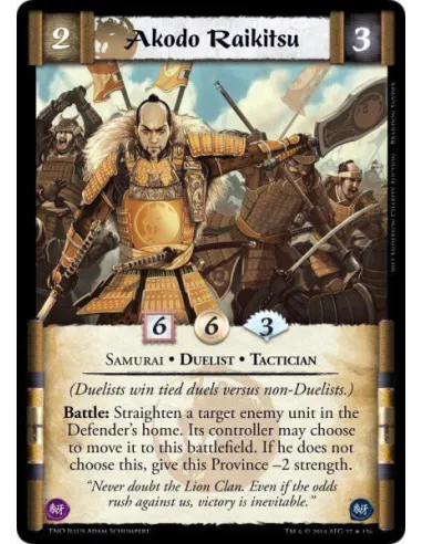 Battle: Straighten a target enemy unit in the Defender's home. Its controller may choose to move it to this battlefield. If he does not choose this, give this Province -2 strength.