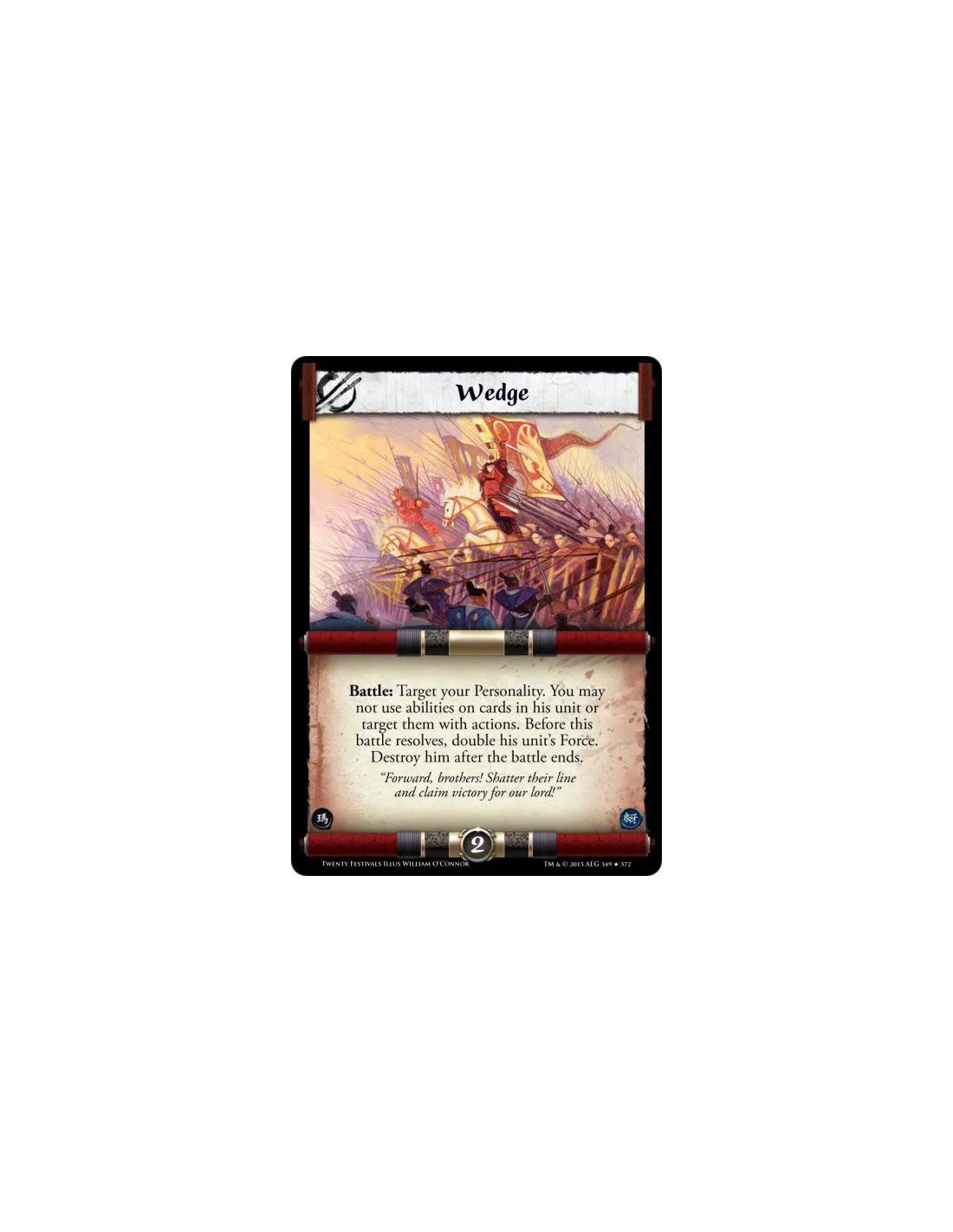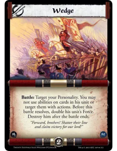 Battle: Target your Personality. You may not use abilities on cards in his unit or target them with actions. Before this battle resolves, double his unit's Force. Destroy him after the battle ends.