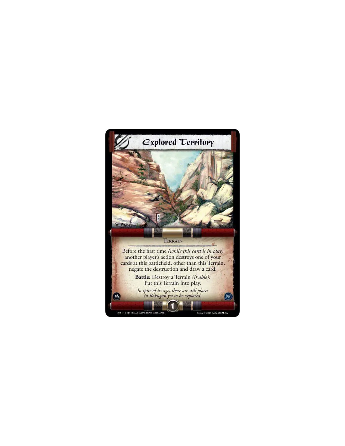 Before the first time (while this card is in play) another player's action destroys one of your cards at this battlefield, other than this Terrain, negate the destruction and draw a card.