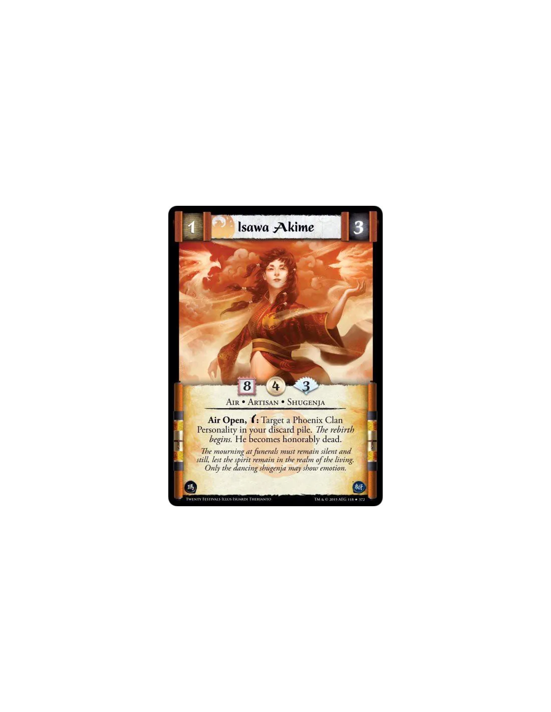 Air Open, w: Target a Phoenix Clan Personality in your discard pile. The rebirth begins. He becomes honorably dead.