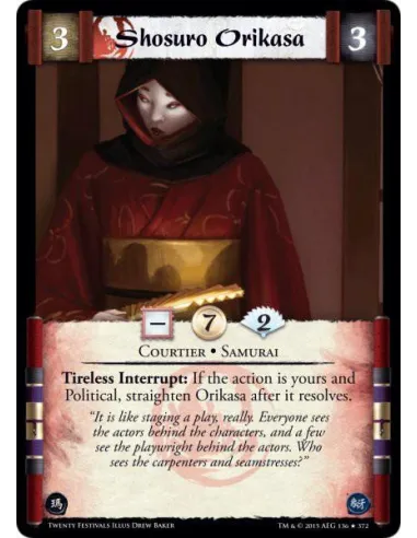 Tireless Interrupt: If the action is yours and Political, straighten Orikasa after it resolves.