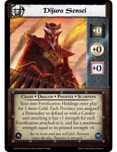 Your non-Fortification Holdings enter play for 1 more Gold. Each Province you assigned a Personality to defend or with a Cavalry unit attacking it has +1 strength for each Fortification attached to it, and has a maximum strength equal to its printed strength +4.