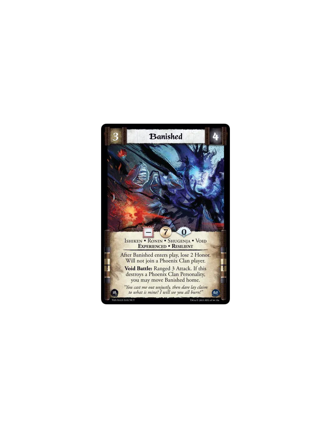 After Banished enters play, lose 2 Honor. Will not join a Phoenix Clan player.