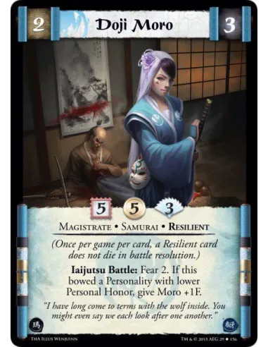 Iaijutsu Battle: Fear 2. If this bowed a Personality with lower Personal Honor, give Moro +1F.