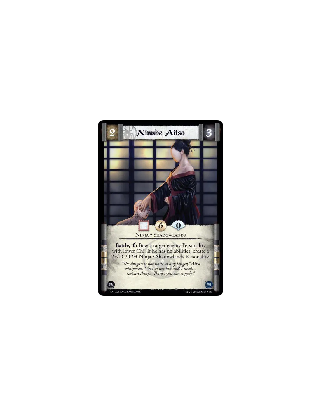 Battle, w: Bow a target enemy Personality with lower Chi. If he has no abilities, create a 2F/2C/0PH Ninja • Shadowlands Personality.