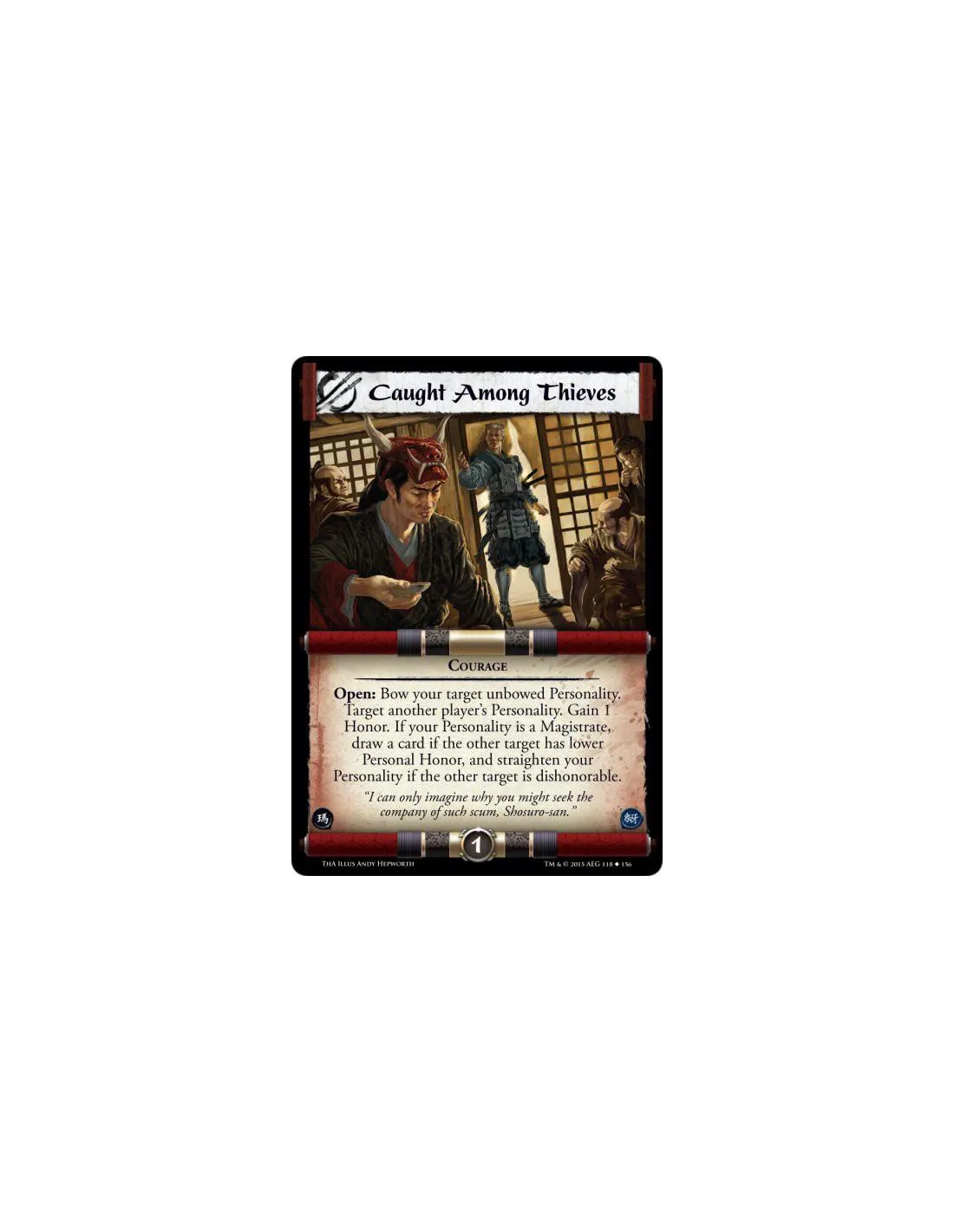 Open: Bow your target unbowed Personality. Target another player's Personality. Gain 1 Honor. If your Personality is a Magistrate, draw a card if the other target has lower Personal Honor, and straighten your Personality if the other target is dishonorable.