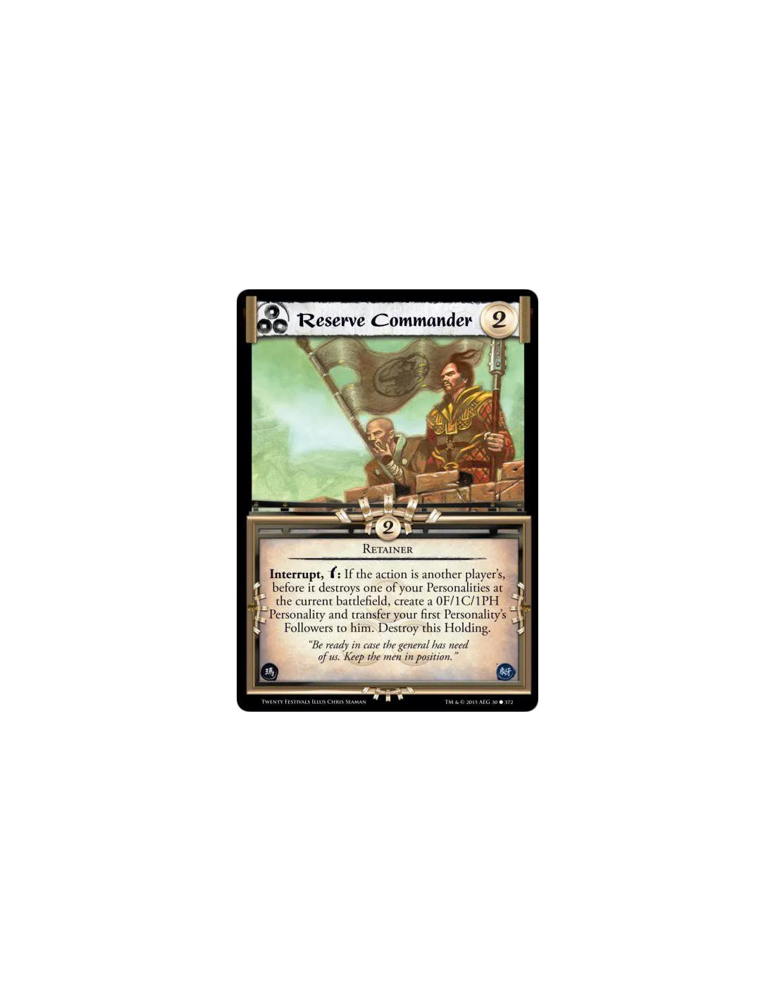 Interrupt, w: If the action is another player's, before it destroys one of your Personalities at the current battlefield, create a 0F/1C/1PH Personality and transfer your first Personality's Followers to him. Destroy this Holding.