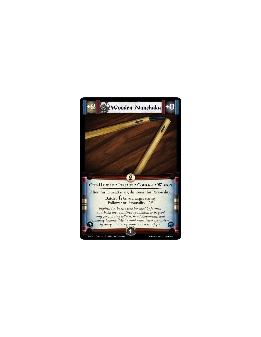 Inspired by the rice thresher used by farmers, nunchaku are considered by samurai to be good only for training reflexes, hand movements, and standing balance. Most would never lower themselves by using a training weapon in a true fight.