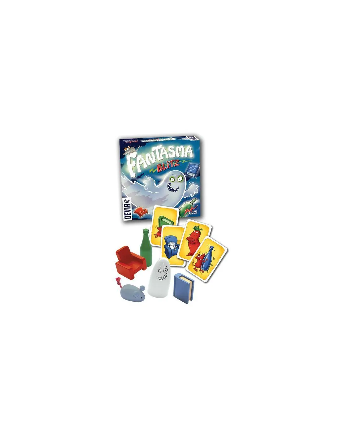 Juego de reflejos para 2-8 jugadores de fulminantes reacciones. Uno de los jugadores gira la carta superior de la baraja de tal manera que quede visible para todos. Entonces los jugadores deben intentar coger el objeto que coincida, en todo incluso el color, con el mostrado en la carta. Si no hay objeto que cumpla los requisitos, los jugadores deben coger el que ni se muestre en la carta ni comparta color con ninguno de los objetos que aparezcan en ella. El jugador que acierte, colocará la carta delante de él como recompensa y procederá a revelar la siguiente carta del mazo. El juego termina cuando la pila de cartas se acaba y el que tiene más cartas ganadas se proclama vencedor.